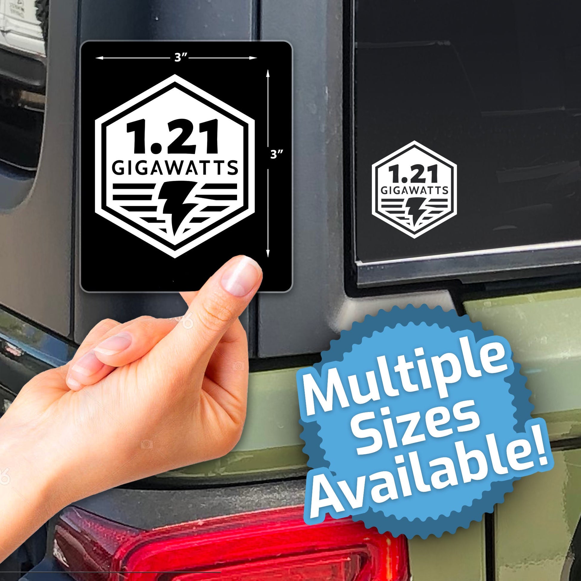 1.21 Gigawatts?! Great Scott! Let's go Back To The Future with this fun novelty 4x4 and Car Accessory Vinyl Decal Sticker. Also great for your Hydro Flasks, phone cases or computers!